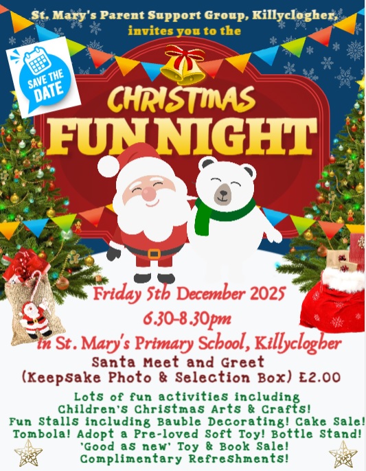 If you have a child due to start school in Nursery or Primary 1 in September 2026, we have lots of information here on the school website, including our Prospectus and video presentations www.stmaryskillyclogher.co.uk/our-school/applying-for-a-place-in-nursery-or-year-1/.